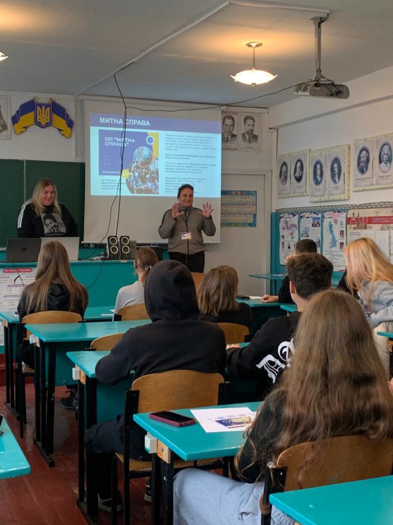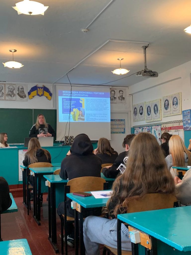 Профорієнтаційний захід провели — Юлія ХОЛОДНА, Ольга РАЦ та Олена КОТ, а допомогу в організації інтерактивних завдань і вікторини надали студентки першого курсу освітньої програми «Митна справа» — Ільєня Софія, Бушева Дар’я та Лобач Вікторія. Така форма спілкування сприяла наближенню школи та університету, дала можливість молоді зробити власний крок у майбутнє, обираючи професію, яка поєднує знання, міжнародні перспективи та можливості карєрного росту.